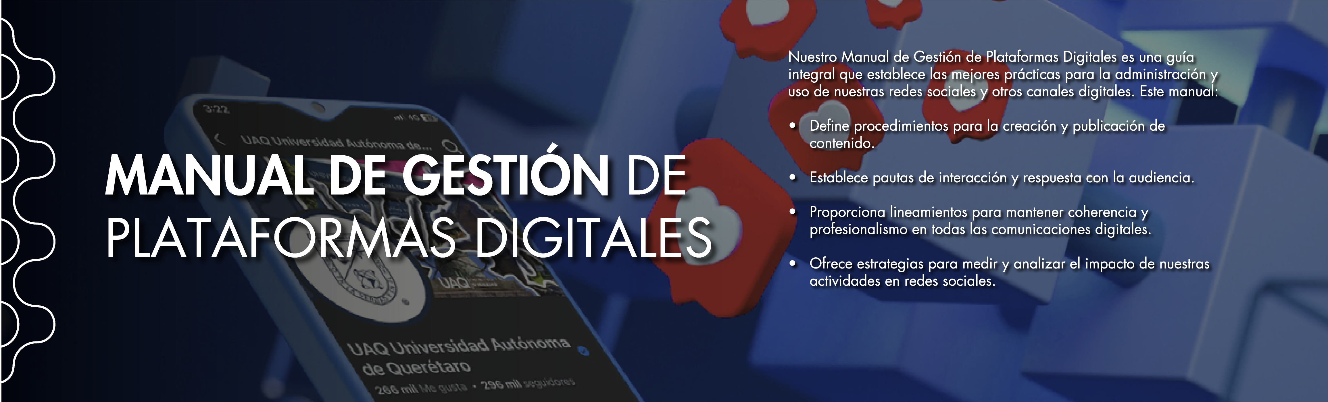 Diseñamos campañas y acciones de comunicación para las diferentes unidades educativas, administrativas y de gestión de la UAQ; además brindamos capacitación a las y los encargados de la gestión de redes sociales universitarias que lo soliciten.